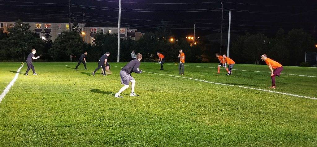 The 2018 TF5 play-offs saw two great games this past Sunday night. The first crossover game saw the Badgers and Rampage battle for survival in a close contest. The Rampage who struggled all season saved their best game for the first round. They scored quickly on the first play of the game and made some great defensive stops. However Badgers Quarterback Chris Lewis couldn’t be contained. He spread the ball around to all his favorite targets. In the end it was only 3 points that separated the teams. Badgers advance beating the Rampage 30-28.