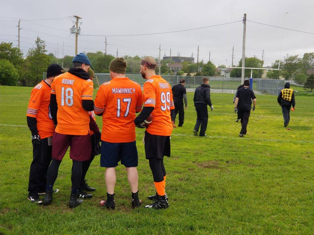 It was a tough start for the league this past Sunday, as teams battled the wind and the rain more than each other. The heavy wind had its way with the ball as all quarterbacks struggled to control a pass. In the first game the Big Splendas got a little revenge on the team that put them out of the play-offs last September. Jon Andrusko caught the only touch pass of the game as the Big Splendas shut out the Rushers 6-0.