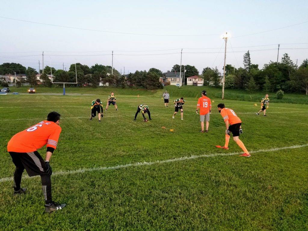 The later game on the other hand was a fantastic close contest. Both teams battled hard as both defenses tormented the offense. Rampages’ Scott Vere Holloway had a great game with a pick 6 and interception to make it close. On the last drive for the win the Rampage spiked their way up the field but couldn’t get their receives to go out of bounds. Big Splendas hang on for their second win 16-12.